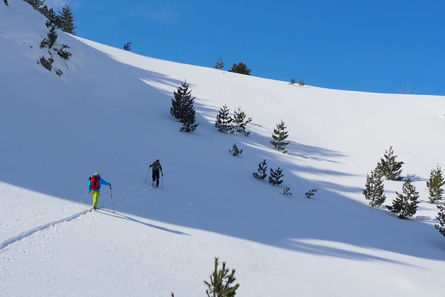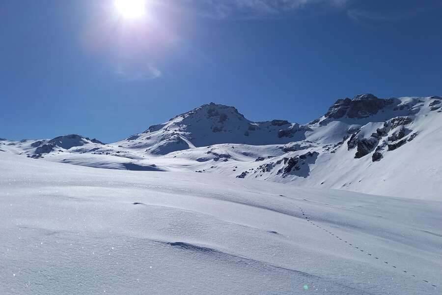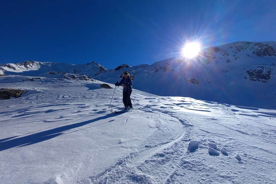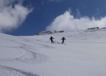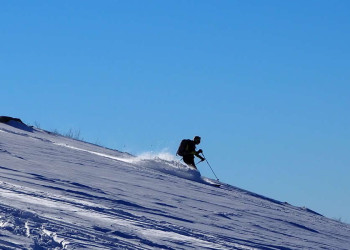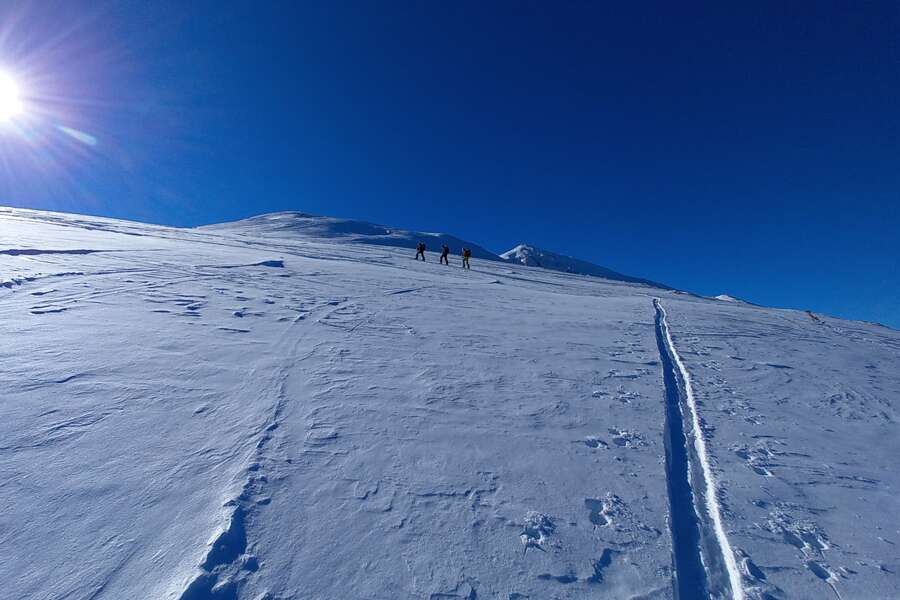 Den Balkan mit Ski entdeckenEs ist noch früh am Morgen, der Himmel über den albanischen Alpen färbt sich in sanften Pastelltönen. Der Schnee glänzt im ersten Licht, als wir unsere Felle an den Ski anbringen und uns auf den Weg zum Gipfel des höchsten Berges, dem 2764m hohen Kobar, machen. Die Kälte ist beißend, doch die Vorfreude und das Gefühl der Unberührtheit dieser Berge lassen uns schnell die frostigen Temperaturen vergessen.Mit jedem Schritt gewinnen wir an Höhe, und der Blick öffnet sich mehr und mehr. Unten breitet sich das grüne Tal aus, während sich vor uns die beeindruckende, schroffe Landschaft der Korab-Koritnik-Gruppe in die Höhe schraubt. Es ist der Moment, in dem der Wind fast stillzustehen scheint, und nur das leise Knirschen des Schnees unter unseren Ski zu hören ist. Wir haben das Gefühl, ein Gebiet zu betreten, das noch kaum jemand betreten hat – die Berge fühlen sich wild, ursprünglich und rein an.Als wir schließlich den Gipfel des Kobars erreichen, breitet sich vor uns ein Panorama aus, das keine Worte fassen können: Weite, schneebedeckte Hänge, unberührte Täler und die ungestörte Stille, die uns umgibt. In der Ferne ist das Sharr-Gebirge zu sehen, unser nächstes Ziel. Der Abfahrtsgenuss ist unbeschreiblich – der Schnee unter den Ski fühlt sich leicht und federnd an, während wir die weiten, leeren Hänge hinuntergleiten, ohne einen weiteren Menschen zu sehen.Dieser Tag, an dem wir den höchsten Punkt unserer Tour erreicht haben, wird uns noch lange begleiten. Nicht nur die atemberaubende Landschaft, sondern auch das Gefühl, ein unentdecktes Paradies für uns allein zu haben, wird uns immer wieder in den Gedanken auftauchen.