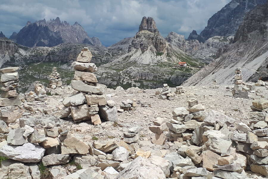 Eindrucksvolle Alpenüberquerung vom Königssee zu den DolomitenDer finale Aufstieg ist ein stiller Höhepunkt dieser Reise. Die letzten Schritte führen uns durch das geschichtsträchtige Hochtal, der Blick nach oben wird freier, weiter und die Spannung wächst. Langsam, fast ehrfürchtig, erreichen wir die Dreizinnenhütte. Und dann – wie ein lange ersehnter Traum – stehen sie vor uns. Die Drei Zinnen, majestätisch und unerreichbar, erheben sie sich wie mächtige Naturkathedralen aus der Berglandschaft. Ihr schroffer Fels schimmert im Licht des späten Vormittags und jeder einzelne Stein scheint von Geschichten vergangener Zeiten zu erzählen. Der Anblick raubt uns den Atem. Wir verweilen, lassen den Blick schweifen und spüren das Gefühl von Erfüllung – wir haben es geschafft, sind angekommen, inmitten dieser imposanten, zeitlosen Schönheit. Das Bild dieser monumentalen Gipfel wird sich für immer in unsere Erinnerungen brennen, ein Symbol der Reise, der Herausforderungen und der unvergesslichen Freiheit, die uns diese Alpenüberquerung geschenkt hat.