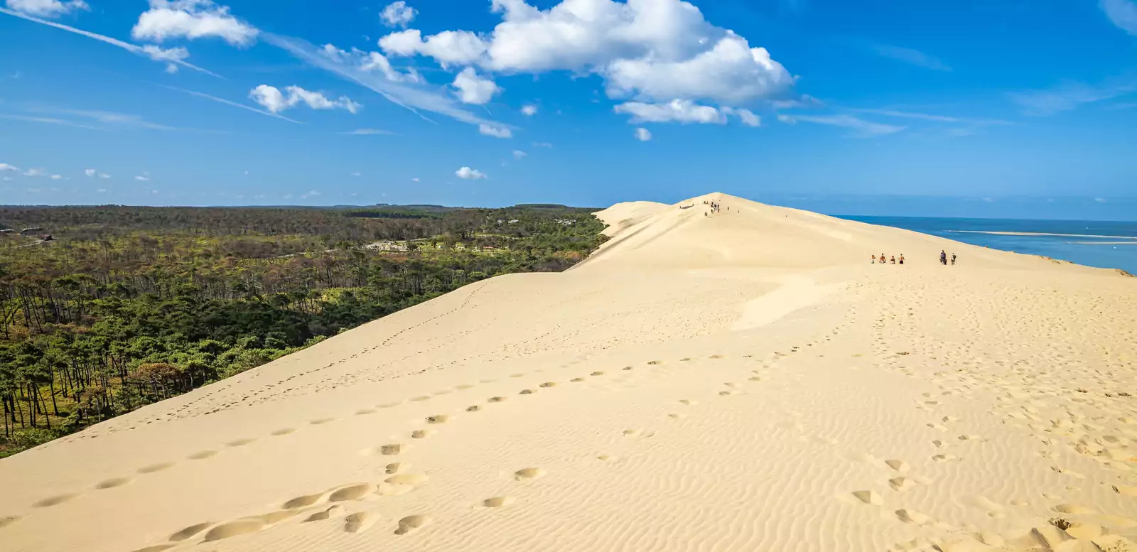 3. Tag: Düne von PilatAuf zur Küste! Wir fahren nach Pilat und erklimmen auf einem Treppenweg die höchste Wanderdüne Europas. Mit herrlichen Ausblicken über den Atlantik folgen wir dem fast 3 km langen Sattel des riesigen Sandbergs. Nach dem Abstieg zur Küste wandern wir am Strand entlang bis Pilat Plage (GZ: 3 Std., +/- 100 m). Am Nachmittag Bezug unseres Hotels in Arcachon. (3 Ü)
