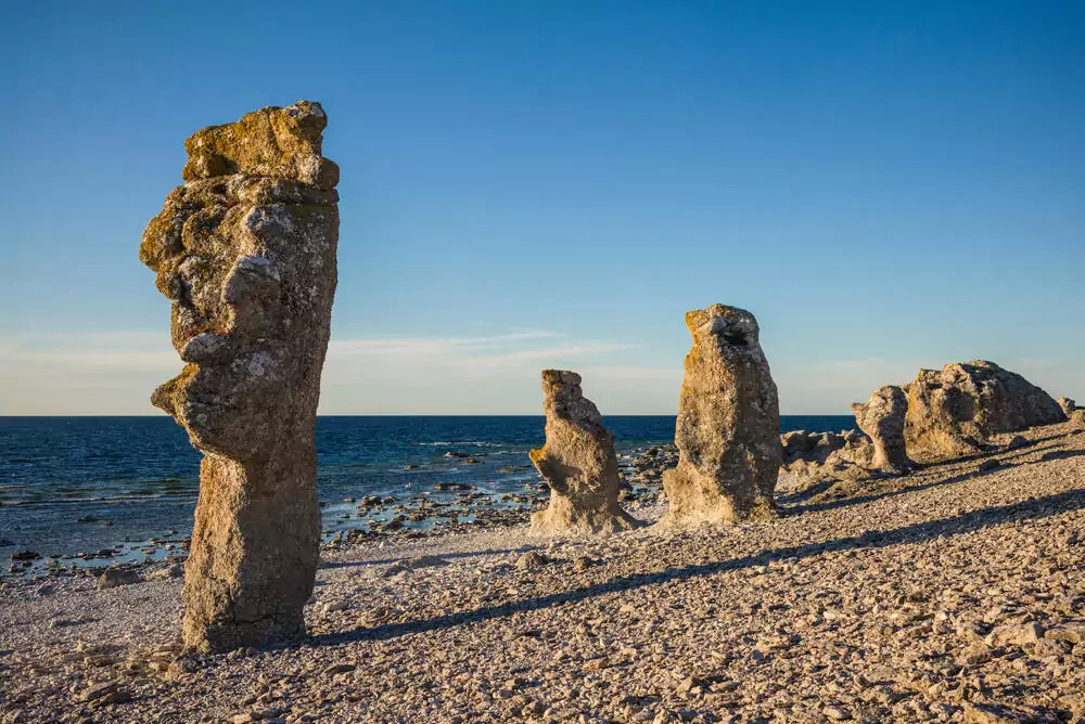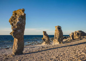 4. Tag: Tagesausflug nach FåröHeute fahren wir in den äußersten Norden Gotlands. Auf dem Weg besuchen wir die schöne Opferkirche von Bro, in deren Gemäuern auch eisenzeitliche Bildsteine eingebaut wurden. Nach Ankunft in dem kleinen Örtchen Fårösund bringt uns eine kurze Fährfahrt auf die Insel Fårö, die nur durch eine kleine Meerenge von Gotland getrennt ist. Hier scheint die Zeit stehen geblieben zu sein, die Landschaft wird durch die langen Trockenmauern der Schafweiden durchzogen, hübsche reetgedeckte Schafställe und Mühlen ziehen bei der Fahrt an den nördlichsten Zipfel der Insel an uns vorbei. Wir bestaunen die bizarren Raukarfelder von Langhammers und Gamla Hamn und bekommen so einen Eindruck von der interessanten geologischen Geschichte Gotlands. Hier hat die Erosion im Laufe der Jahrmillionen erstaunliche Felsenfiguren aus dem Kalkstein geformt. Auf dem Weg machen wir immer wieder schöne Spaziergänge entlang dieser einzigartigen Küstenlandschaft (GZ insgesamt: 2 Std., kaum Höhenunterschiede).
