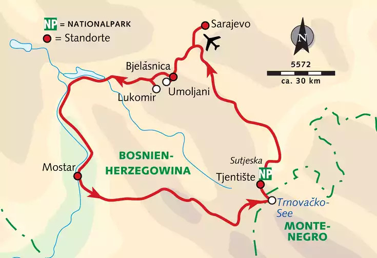 Bist du auf der Suche nach dem Unbekannten? Einem Land, wo die Wanderpfade noch nicht breitgetreten sind? Dann begleite uns nach Bosnien und Herzegowina! Tauche ein in das kulturelle Erbe der Illyrer, Römer, Osmanen und Österreicher: Moscheen neben Synagogen, katholische neben orthodoxen Kirchen. Ja, das lebendige Miteinander der Kulturen macht das Land so besonders! Doch auch die Natur begeistert uns auf Schritt und Tritt: Wir wandern durch die Almen und Täler der Bjelašnica- und Sutjeska-Berge, bestaunen die Kravice-Wasserfälle und das Blagaj-Kloster, das sich malerisch an einen Karstfelsen schmiegt. Komm also mit und entdecke die berührend unberührten Kultur- und Naturwunder Bosniens und Herzegowinas!