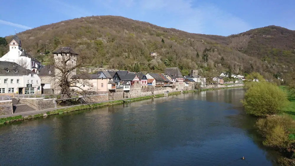 2. Tag: Von Bischof zu BischofWir starten in der Bistumsstadt Limburg mit einem kurzen Bummel durch die mittelalterlichen Fachwerkgassen der Altstadt. An der Lahn angekommen, nehmen wir Kurs auf Diez, das von seinem alten Grafenschloss überragt wird. Weiter geht es Richtung Fachingen, der bekanntesten deutschen Heilwasser-Quelle. Immer wieder geht der Blick auf die idyllischen Flussschleifen, teils von markanten Felsen aus wie Franzosenlay oder dem Katzenkopp. In einer romantischen engen Flußschleife erreichen wir das idyllische Örtchen Balduinstein mit gleichnamiger Burgruine und Schloss Schaumburg (GZ: 4 1/2 Std., +/- 100 m).