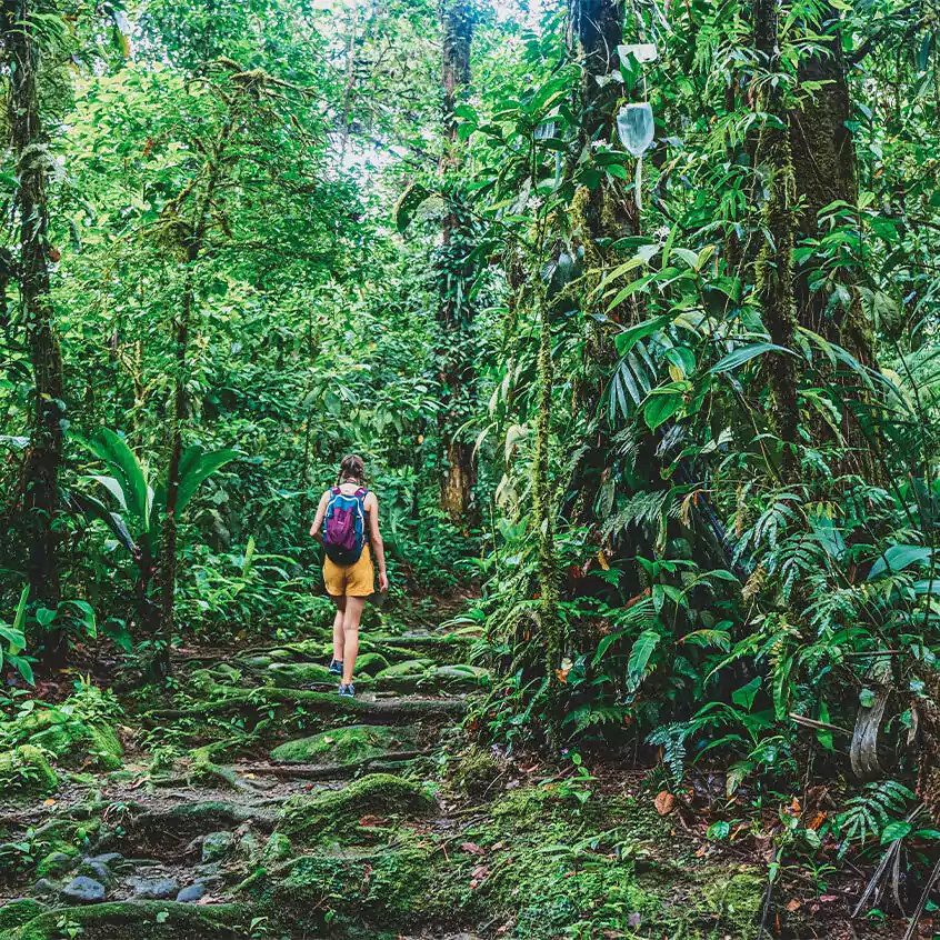 Tag 10: Magischer Nebelwald von MonteverdeDer Tag startet mit einer Bootsfahrt über den Arenal-See. Die spiegelglatte Oberfläche des Wassers reflektiert die umliegenden Berge – es fühlt sich an, als gleitest du direkt ins Herz eines Gemäldes. Und dann Monteverde! Dich erwartet pure Magie. Du wanderst durch eine mystische Welt, wo moosbewachsene Bäume und tiefhängende Wolken die Natur in einen Hauch von Zauber hüllen. Überall zwitschert, raschelt und tropft es – als hätte der Wald sein eigenes Orchester. GZ 3 1/2 Std., + 180 m, - 235 m. Lodgeübernachtung in Monteverde. 40 km. (F)