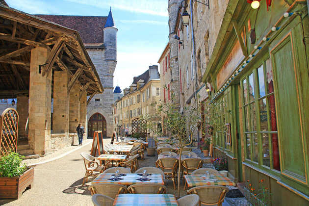 8. Tag: Dordogne – Heimat der NüsseDen heutigen Tag verbringen wir im Tal der Dordogne. Das am Südufer gelegene Carennac zählt zu den schönsten Dörfern am Flusslauf. Blumengeschmückte Quercy-Häuschen, mit Türmchen versehene Herrenhäuser und das berühmte Figurenportal der Kirche Saint-Pierre sind ein Fest für die Augen. Wir überqueren die Dordogne und fahren weiter zur „Stadt der sieben Türme“ – Martel. Der Legende nach soll kein Geringerer als Karl Martell Gründer des Städtchens sein. Alte Adelspalais und die gräfliche Residenz Hôtel de la Raymondie zeugen von seiner stolzen Geschichte. Martel ist aber auch das Zentrum des Nusshandels und regionaler Erzeugnisse. Höhepunkt unseres Spaziergangs ist sicher der malerische Place des Consuls. In seiner Mitte ruht auf mächtigen Pfeilern die historische Markthalle. Heute ist Wochenmarkt und wir genießen nochmal nach Herzenslust das rege Treiben, stöbern an den Ständen oder kehren in eines der kleinen Restaurants ein. Am Nachmittag besuchen wir eine der umliegenden Nussplantagen. In dem kleinen Familienbetrieb schauen wir bei der Produktion von Nussöl zu und kosten vom köstlichen Walnuss- und Haselnussöl.