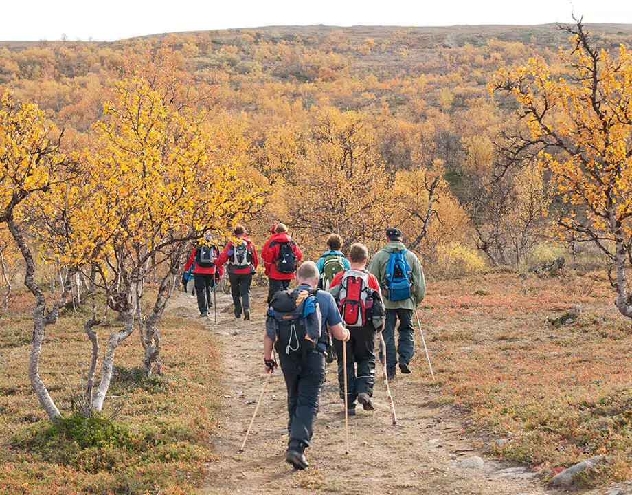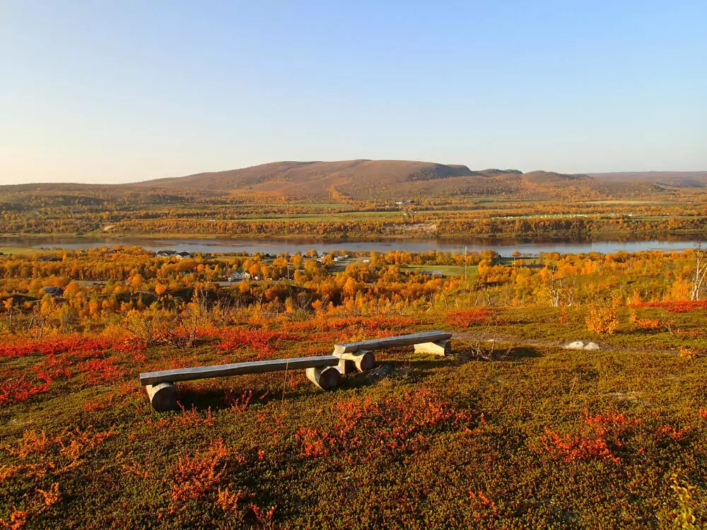 2. Tag: Wandern am TenoVon unserer Unterkunft erwandern wir die umliegenden Hügel, die sich in den schönsten Herbstfarben präsentieren. Wir belohnen uns mit Ausblicken auf den Teno-Fluss (GZ: 3 Std., +/- 50 m). Abends erleben wir typisch finnische Glücksgefühle beim Saunagang.