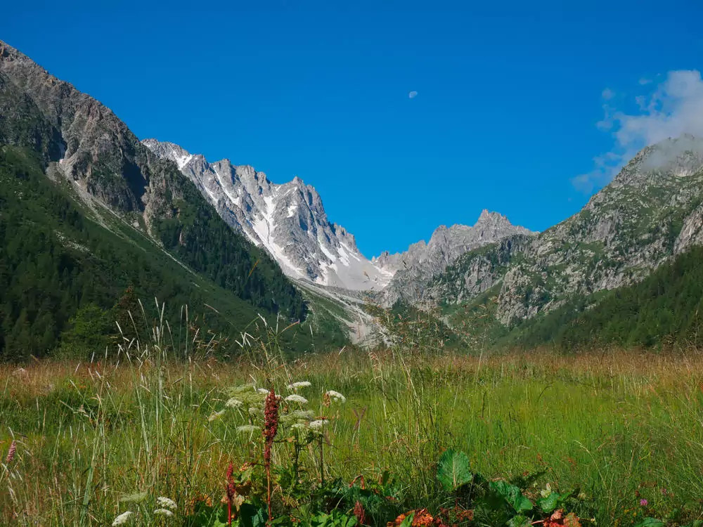 4. Tag: Das einsame Ferret-TalTransfer nach Lavachey (1.700 m) im Ferret-Tal. Kurzer Aufstieg zur Bonatti-Hütte (2.025 m). Hier eröffnet sich ein toller Blick über die ganze Mont-Blanc-Kette. Über einen Balkonweg wandern wir nach Arp Nouvaz (1.769 m). Per Bus zurück nach Courmayeur.