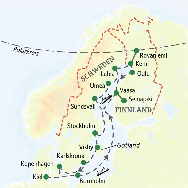 15 Tage Kreuzfahrt auf der Ostsee. Auf unserer Route: Stockholm und Kopenhagen, die Kulturhauptstadt Oulu, verschiedenen UNESCO-Welterbestätte sowie die Inseln Gotland und Bornholm.