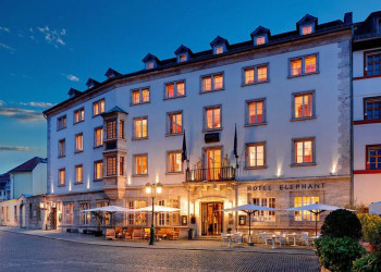 Hotel Elephant****Das nach umfangreichen Renovierungsarbeiten 2018 wiedereröffnete Hotel im Herzen von Weimar ist seit über 300 Jahren Treffpunkt für Dichter, Künstler und Staatsmänner aus aller Welt. Ausgesuchtes Mobiliar im Art-déco- und Bauhaus-Stil wurde mit zeitgenössischer Kunst kombiniert. Die 99 Zimmer verfügen über Sat.-TV, WLAN und Föhn. Ein Restaurant, in dem morgens ein reichhaltiges Buffet angeboten wird, und eine Bar sorgen für Ihr leibliches Wohl. Reisen Sie mit dem Auto an, steht Ihnen ein Parkplatz zur Verfügung (ca. 22 € pro Tag). Hotelkategorisierung durch Selbsteinschätzung.