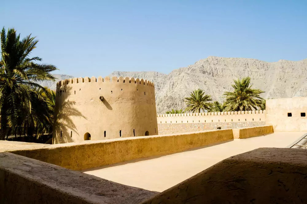 3. Tag: KhasabNach dem Frühstück brechen wir auf zur omanischen Exklave Musandam. In Ras Al Dahrah passieren wir die Grenze und fahren mit herrlichen Ausblicken weiter bis zur Hafenstadt Khasab – zu unserer linken der Arabische Golf, zu unserer Rechten die Gipfel des Hajar-Gebirges. In Khasab angekommen, besuchen wir die von portugiesischen Seefahrern im 17. Jahrhundert erbaute Festung. 3 Hotelübernachtungen in Khasab. 180 km. (F)