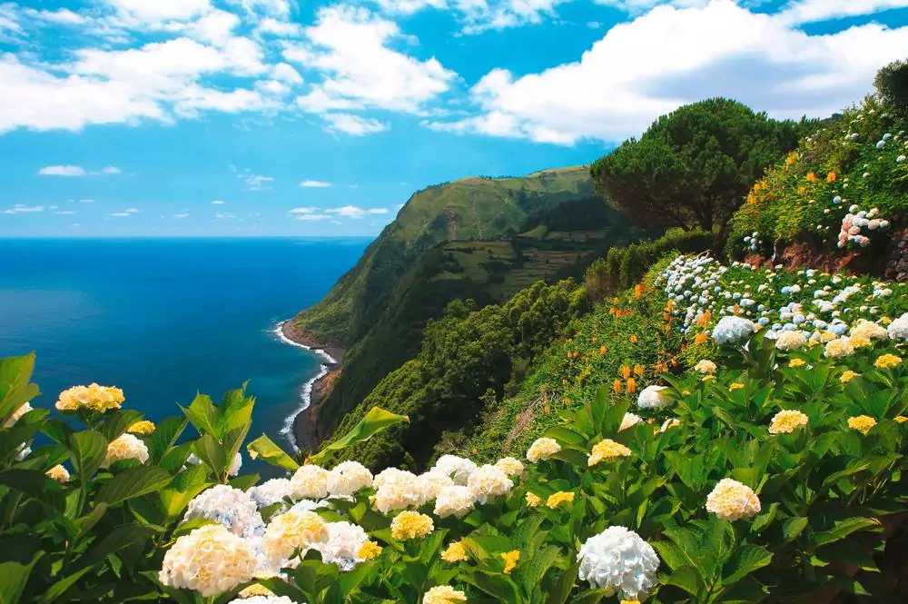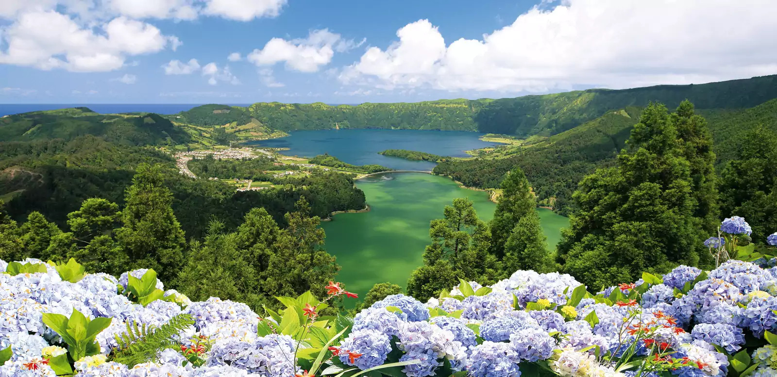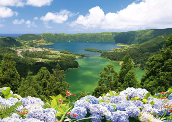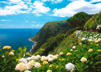 Fast auf halber Strecke zwischen Europa und Amerika liegen die Azoren, neun Inseln von urwüchsiger Schönheit. Umrahmt von wuchernden subtropischen Pflanzen, zeugen tiefblaue Kraterseen, dampfende Quellen und bizarre Lavaströme von dem vulkanischen Ursprung des Archipels. In jeder Hinsicht eine Garantie für reizvolle Wanderungen! Der Golfstrom sorgt auch im Sommer für ein mildes, ausgeglichenes Klima mit Temperaturen um 25 Grad Celsius.