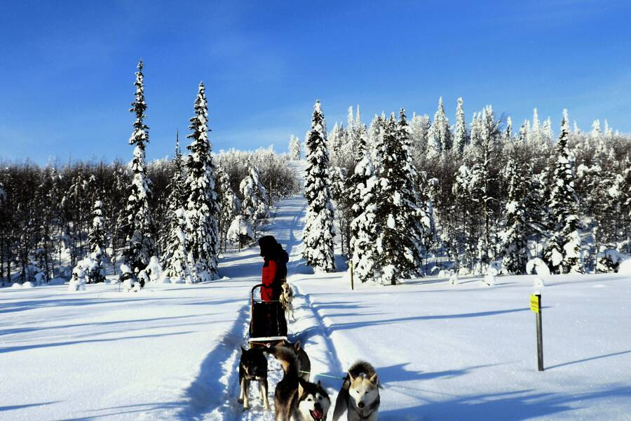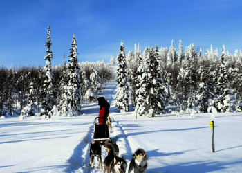Hier ist Winter noch garantiert: in den romantisch verschneiten Wäldern Lapplands. Freuen Sie sich auf eine Hundeschlittenfahrt, den Besuch einer Rentierfarm, eine Schneeschuhwanderung und Sami-Kultur! Wer möchte, rodelt auf einem Schlitten zu Tal, erkundet die Winterlandschaft beim Langlaufen oder wärmt sich – typisch finnisch – in der Sauna auf. Und mit etwas Glück zeigt sich die spektakuläre Nordlichtshow am nächtlichen Himmel. Willkommen jenseits des Polarkreises!
