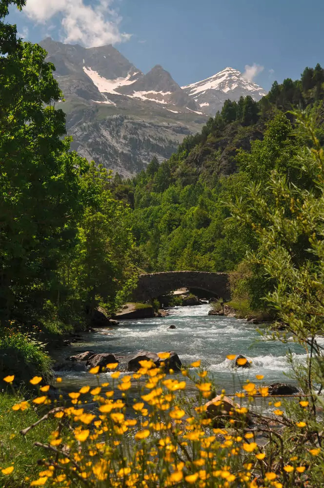 Die Pyrenäen sind wenig besiedelt, wild und ursprünglich. Der Nationalpark der Hautes-Pyrénées besticht durch vergletschertes Hochgebirge, steile Felswände und rauschende Wasserfälle. Im berühmten Felsenkessel Cirque de Gavarnie stürzt der zweithöchste Wasserfall Europas, die Grande Cascade, in die Tiefe. Neben der wilden Bergromantik murmeln glitzernde Bäche und untermalen bunte Blüten die Wanderpfade. Die tiefblauen Bergseen sind eingebettet in die Gipfelwelten. Lass dich von der Stille und Naturschönheit der Pyrenäen berühren.