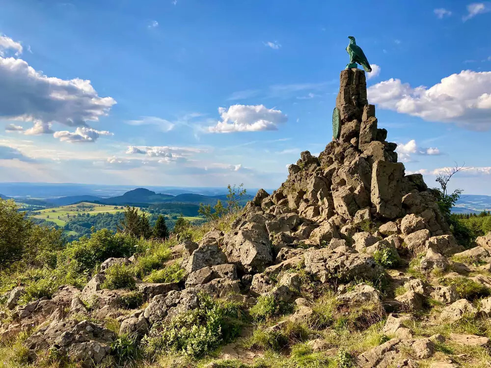 4. Tag: Das Rote Moor und die KaskadenschluchtWir starten unsere Wanderung unweit des Naturschutzgebiets Rotes Moor, eines der letzten Hochmoore Hessens. Schon nach wenigen Gehminuten säumen ausgedehnte Weiden unseren Weg. Das Grün der Natur wirkt beruhigend und entspannend. Vielleicht schnalzt in der Ferne sogar ein Birkhuhn. Natur pur! Der wildromantische Wanderweg führt am Feldbach entlang durch wunderschönen Buchenwald. Durch die schattige, idyllische Kaskadenschlucht führt uns danach ein Bohlenweg weiter durch das Rote Moor und dichte Karpatenbirkenwälder (GZ 4 Std., +/- 160 m).