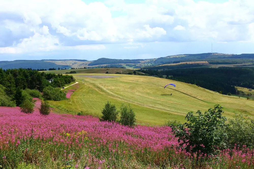 5. Tag: Die WasserkuppeDie Wasserkuppe (950 m) – Wiege des Segelflugs, Fuldaquelle und höchster Berg Hessens. Ein Höhepunkt jeder Rhönreise. Wir starten frühmorgens mit dem Bus dorthin. Tiefe Ruhe liegt (noch) über der Landschaft. Mit grandiosen Weitblicken wandern wir auf dem Hochrhöner-Wanderweg von der Wasserkuppe Richtung Milseburg (GZ: 3 Std., + 150 m, - 290 m). Was für ein Panorama! Unterwegs haben wir Gelegenheit zu einer zünftigen Einkehr (fakultativ).