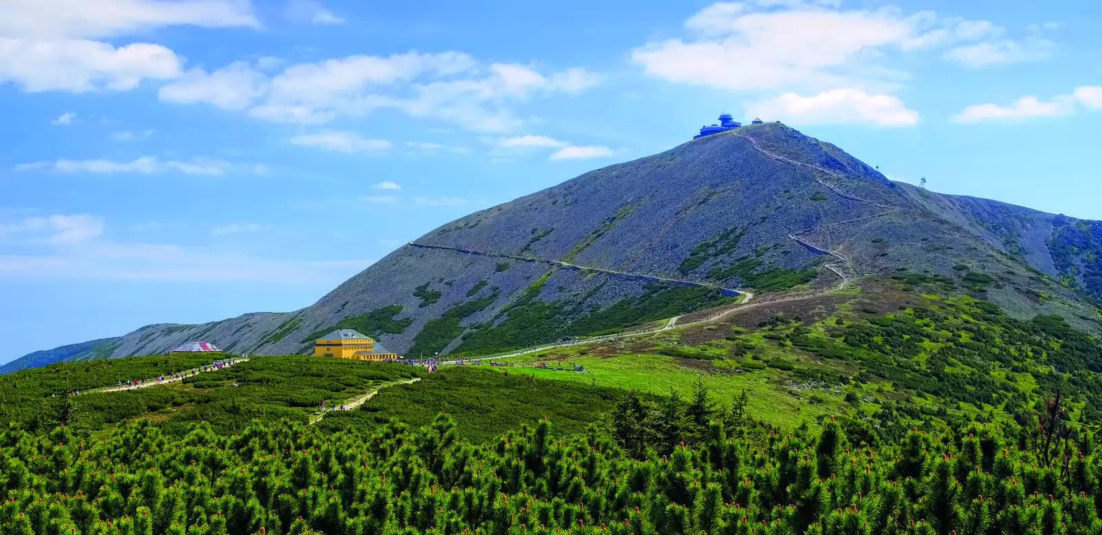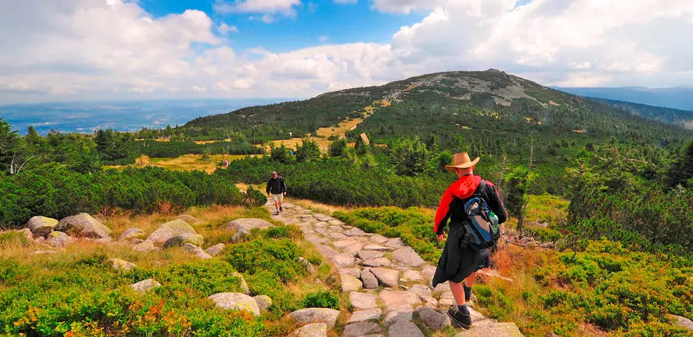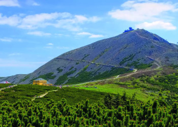 7. Tag: Auf zur Schneekoppe!Die Krönung unserer Wanderwoche: Vom Okraj-Pass wandern wir zum höchsten Berg dieses Gebirgszuges, Schneekoppe (1.603 m) – grandioses Panorama, ganz Schlesien liegt nun zu unseren Füßen! Danach Abstieg nach Karpacz (GZ: 5 1 /2 Std., + 600 m, - 1.050 m, 2-3 Stiefel).