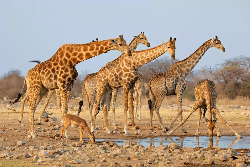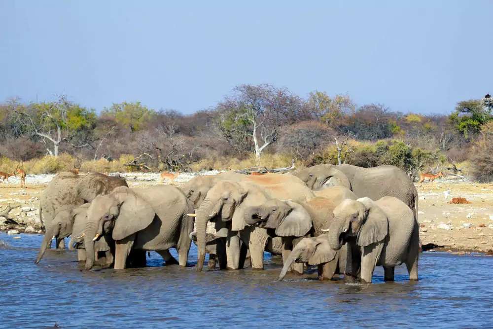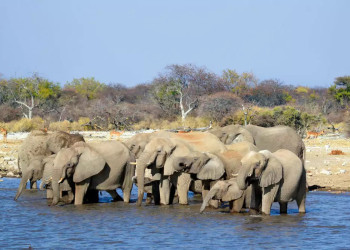 13.-14. Tag: Etosha-NationalparkWir nehmen uns zwei Tage Zeit für den Etosha-Nationalpark, den ältesten und beliebtesten Nationalpark Namibias. Die Etosha-Salzpfanne ist eine riesige ausgetrocknete Salzpfanne, die den Park durchzieht. Bei unseren ausgiebigen Pirschfahrten treffen wir an den Wasserstellen vielleicht auf Löwen, Elefanten, Giraffen, Zebras, Nashörner und unterschiedliche Antilopenarten. Dafür stehen wir gerne früh auf. Fotoapparat und Fernglas nicht vergessen! 2 Lodgeübernachtungen in der Etosha-Umgebung. 310 km und 150 km. (2 x F, 1 x M, 2 x A)