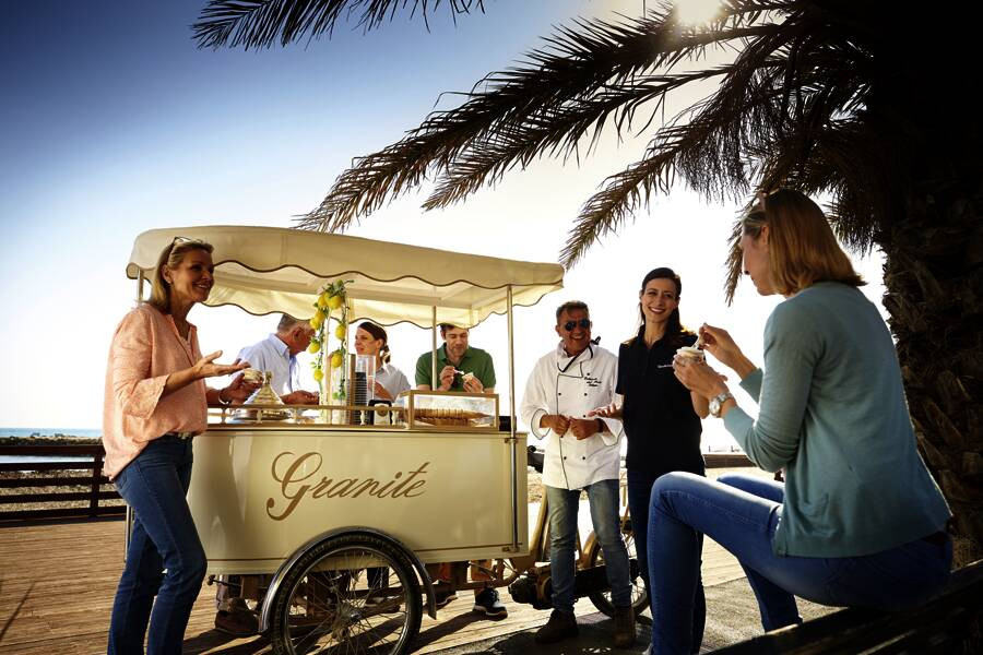 Meta di Sorrento, Hotel Giosue a Mare****Das Hotel liegt am Fuße der Klippen von Meta di Sorrento und verfügt über einen eigenen Strand direkt vor der Haustür mit Sonnenliegen und Sonnenschirmen. Ein kleiner Spaziergang bergauf führt Sie zu Einkaufsstraßen, Restaurants und Terrassencafés. Mit dem Linienbus erreichen Sie das Zentrum von Sorrent in wenigen Minuten. Gepflegte Aufenthaltsräume, ein schöner Frühstücksraum, wo Sie sich morgens am Buffet bedienen können, ein Restaurant und eine Bar laden zum Verweilen ein. Besonders ansprechend ist die Panoramaterrasse mit Blick über den Golf von Sorrent. Die 44 freundlich eingerichteten, vor Kurzem renovierten Zimmer sind mit Klimaanlage, Sat.-TV, Minibar, Safe und Föhn ausgestattet.