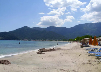 7. Tag: Dem Meer entgegenAusgehend von Limenas führt unsere Wanderroute über das vom thassiotischen Baustil geprägte Gebirgsdorf Panagia. Auf Höhenwegen streben wir der Traumbucht des Golden Beach entgegen. Dort schiffen wir uns ein und fahren entlang des Küstensaums zurück nach Skala Rachoni (GZ: 5 Std., +/- 500 m).