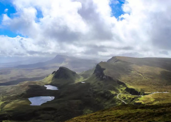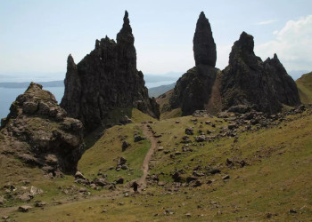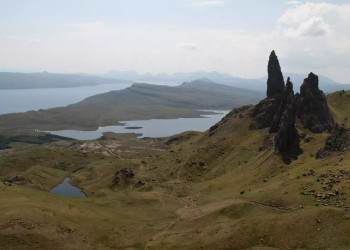 4. Tag: InselhighlightsHeute jagt ein Highlight das nächste. Zunächst fahren wir zum Old Man of Storr, einer spektakulären Felsformation. Wir wandern über steiniges, steiles Gelände mit Ausblicken auf die surreal schöne Landschaft, die wie ein Grand Canyon am Atlantik wirkt, bis zu einem Aussichtspunkt (GZ: 2 Std., + 350 m, - 320 m). Anschließend fahren wir zum Gebiet The Quiraing. An einem kleinen See betreten wir die Bergwelt der Trotternish Ridge. Nach einem Anstieg auf schmalen, steinigen Torfwegen erwartet uns eine sensationelle Landschaft. Die Felsformation The Quiraing ist die Krone eines urzeitlichen Gebirges und bietet einen kontrastreichen Anblick mit ihren bizarren dunklen Formen, dem endlosen Grün der Berge und dem leuchtenden Blau des Atlantiks vor der Silhouette der Highlands auf dem Festland (GZ: 2 1/2 Std., + 230 m, - 80 m).