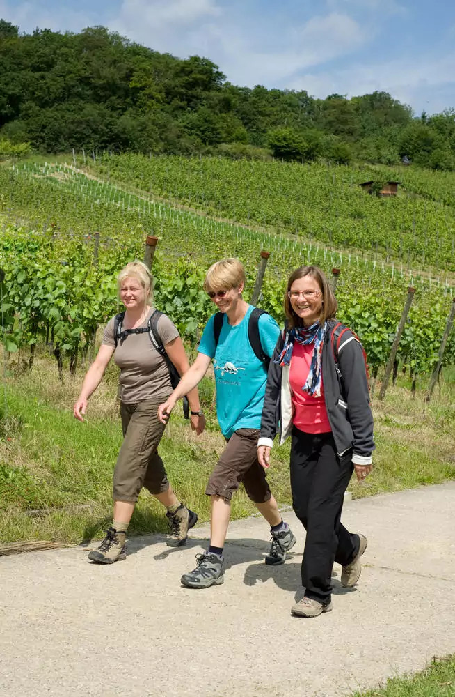 3. Tag: Auf den Spuren des WeinsDie heutige Etappe, die auf dem Hinweg überwiegend durch das Anbaugebiet des viel gerühmten Rotweines führt, bauen wir in eine herrliche Rundwanderung ein: Von Ahrweiler starten wir über den Rotweinwanderweg bis nach Dernau. Nach einer Mittagsrast (eventuell in der Gaststätte des Erzeugers des weltbesten Spätburgunders, Werner Näkel) wandern wir auf idyllischen Pfaden weiter. Entlang der Ahr und durch weite Wälder geht es am Kloster Kalvarienberg vorbei bis in die Altstadt Ahrweilers zurück, wo wir gegen Nachmittag wieder unser Hotel erreichen (GZ: 5 Std., +/- 350 m).