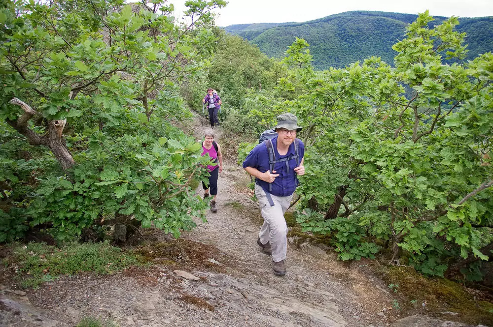 4. Tag: Krönender AusblickDas Tal wird immer enger, doch der letzte Abschnitt ist eindeutig der schönste mit steilen Hängen, Felsdurchbrüchen und tollen Ausblicken. Von Dernau geht es an der Burg Saffenburg und Burg Are vorbei bis Altenahr (GZ: 4 Std., +/- 200 m). Dort haben wir Zeit, um uns im Ort etwas umzuschauen, einen Kaffee zu trinken oder doch noch eine Schleife im Naturschutzgebiet Langfiggtal zu wandern.