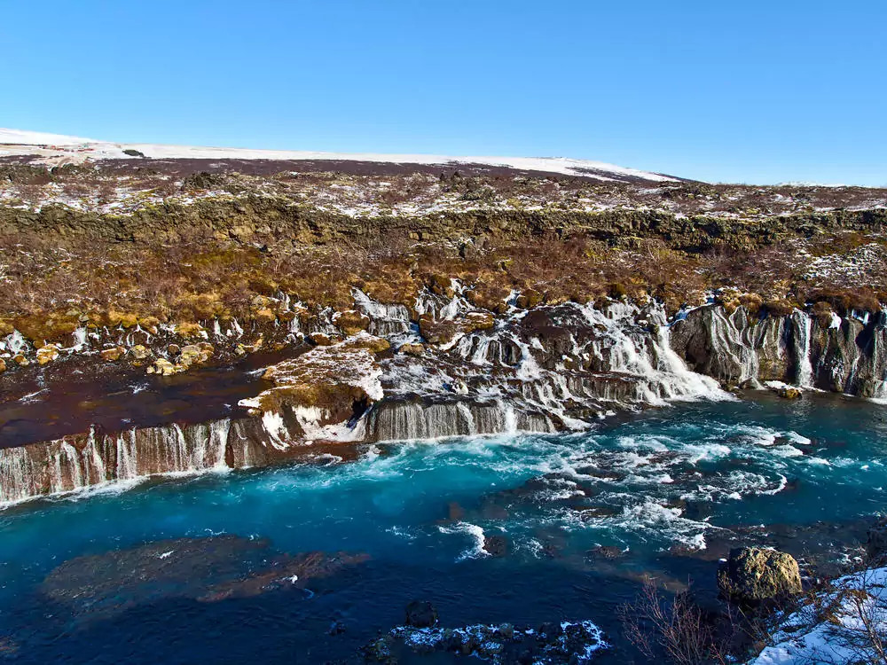 3. Tag: Eisiger Wasserfall & heiße BäderWir besuchen Europas größte Heißwasserquelle Deildartunguhver und entspannen im modernen Geothermalbad Krauma, welches von der Heißwasserquelle gespeist wird. Nach einem Stopp bei den Wasserfällen Hraunfossar machen wir uns auf zu einer ca. 2-stündigen Wanderung. Abend hoffen wir auf sternenklaren Himmel und das ein oder andere Nordlicht.
