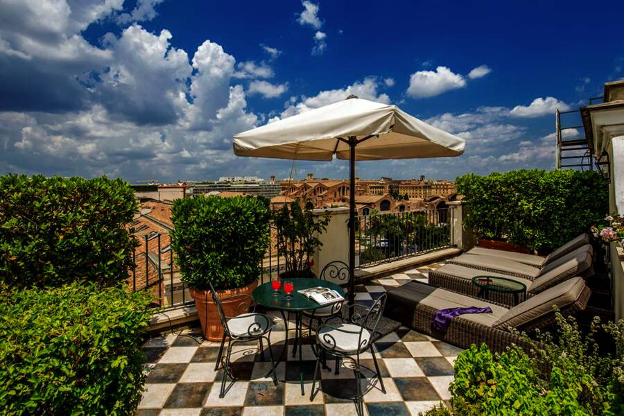 Hotel Mediterraneo****Zwischen Piazza della Repubblica, der Oper und dem Bahnhof liegt dieses traditionsreiche Hotel auf dem höchsten der sieben Hügel Roms, dem Esquilin. Entsprechend beeindruckend ist das Panorama über die ganze Stadt von der Dachterrasse. Dort können Sie beim Aperitif den Sonnenuntergang über Rom genießen. Die Lobby, die Hotelbar und der Frühstückssaal sind im eleganten Art-Déco-Stil der 1930er gehalten, der sich auch in den insgesamt 243 Zimmern wiederfindet. Diese bieten Schallschutzfenster, Klimaanlage, Sat.-TV, WLAN (kostenfrei), Minibar, Safe und Föhn.