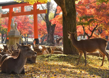 14. Tag: Nara – die Wiege japanischer KulturVor über 1.000 Jahren war Nara japanische Hauptstadt. Heute findet man hier die eindrucksvollsten und am besten erhaltenen Tempelanlagen des Landes. Wir tauchen in die besondere Atmosphäre tausender Stein- und Bronzelaternen entlang des Weges zum Kasuga-Schrein ein. Hier entwickeln wir ein besseres Verständnis für die heutige japanische Kultur. Bahnfahrt zurück nach Kyoto. Hotelübernachtung in Kyoto. (F)