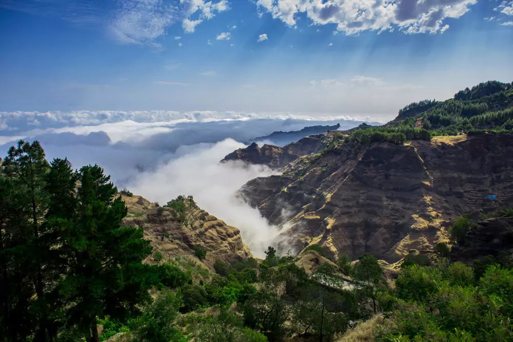 3. Tag: Feliz Ano Novo!Wir nehmen die Morgenfähre nach Santo Antão. An einem alten Vulkankrater laufen wir hinauf zu einem Aussichtspunkt. GZ ca. 1-2 Std., ±100 m. Von hier oben haben wir einen spektakulären Blick in die umliegenden Täler und bestaunen die ehemaligen Eselpfade, die als „Handelswege“ für die landwirtschaftlichen Güter genutzt wurden. Gegen Mittag erreichen wir unsere direkt über dem Ozean gelegene Unterkunft. Bei Meeresrauschen genießen wir unserer Silvesteressen und starten magisch ins Neue Jahr! 2 Hotelübernachtungen in Chã de Igreja (F, M, A)