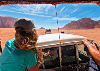 7. Tag: Auf ins Wadi Rum!Wir fahren ins nächste Abenteuer: Willkommen im Wadi Rum! Bei einer Jeep-Safari mit ersten kleinen Wander-Etappen tauchen wir immer tiefer ein in die spektakuläre Wüstenlandschaft. Das UNESCO-Weltnaturerbe diente als Weltraum-Kulisse für zahlreiche Hollywood-FIlme. Wir machen Halt an bizarren Felsenbrücken und hohen Sanddünen. Diese hinunter zu sprinten ist ein großer Spaß! GZ ca. 3 Stunden. 2 Übernachtungen im festen Zeltcamp im Wadi Rum. 130 km. (F, M, A)