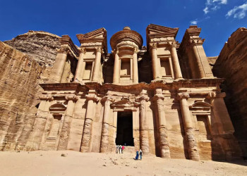 5. Tag: "Klein Petra" & das Kloster Ad-DeirLangsam tasten wir uns heran an das kulturelle Erbe der Nabatäer. Unsere heutige Wanderung startet nur wenige Kilometer von unserem Camp entfernt in "Klein Petra". Im antiken Vorort erwarten uns die ersten Felsengräber und Tempel. Wir folgen alten Karawanenpfaden durch die bis heute nur spärlich besiedelte Felsenwüste Edom. Unser Ziel ist das Kloster Ad-Deir - eines der größten und bekanntesten Bauwerke von Petra. Nach einer ausgiebigen Foto- und Teepause am Kloster fahren wir mit dem Bus zurück zum Camp. GZ 5-6 Stunden. (F, A)