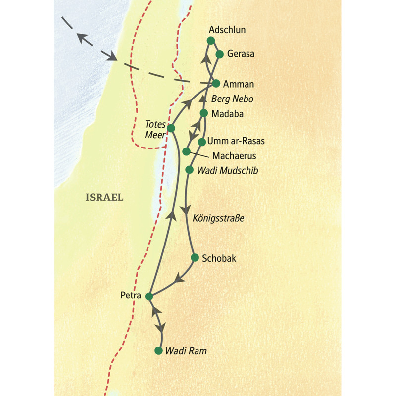 Als "ruhiges Haus in einer lauten Nachbarschaft" bezeichnete der frühere König Hussein sein kleines Königreich. Tatsächlich: Jordanien – politisch stabil, tolerant und sicher – gilt als Vorzeigeland im Nahen Osten. Wanderer lockt die wildschöne Natur, die wir auf den meist einfachen bis mittleren Wanderungen hautnah erleben. Im Mittelpunkt dieser Studiosus-Wanderreise steht neben dem Wandern das Wüstenerlebnis – auf einer Jeepsafari, beim Essen im Zeltcamp unter dem Himmel über der Wüste. Ein weiteres Herzstück: drei Tage in der Nabatäerstadt Petra, einem der großen Wunder dieser Welt. Dazu Bibelstätten, Römerruinen, Kreuzritterburgen – fertig ist das Jordanienpotpourri!