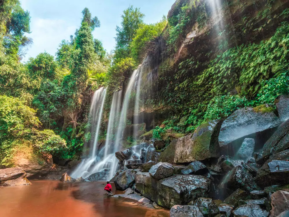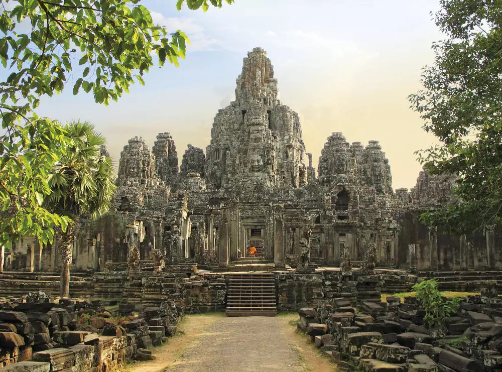 3. Tag: Phnom Kulen-NationalparkAm Morgen zieht es uns in die Bergregion des Phnom Kulen-NP, wo wir den Gipfel des gleichnamigen Berges besteigen. GZ 2-3 Stunden. Hier genießen wir den spektakulären Ausblick in die Natur, bevor es 248 Stufen hinauf geht, um den Tempel Preah Ang Thom zu besuchen. Dieser beherbergt einen etwa acht Meter langen, liegenden Budhha, der einst aus einem Felsen gehauen wurde. Weiter geht es mit dem Bus zum noch ursprünglichen Beng Mealea-Tempel. Die mystische Anlage gehört seit 1992 zum Weltkulturerbe der UNESCO. Hier genießen wir das Dschungelfeeling und fühlen uns ein wenig wie die Entdecker, während wir den am dichtesten überwucherten Tempel-Komplex der alten Khmer-Kultur erkunden. 155 km. (F)