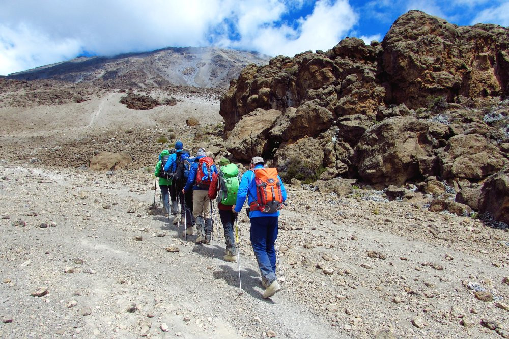 Tag 3 Kikeleva CampDie zweite Etappe führt durch das Hochmoor hinauf zur zweiten Höhle (ca. 3.480 m), wo wir etwas Warmes zu Mittag essen. Der heutige Tag ist ein bisschen anstrengender als der gestrige, wir wandern länger und die Etappe verläuft steiler. Nach ca. sechs Stunden Gehzeit erreichen wir am Nachmittag das Kikeleva Camp (3.630 m) und können die grandiose Aussicht auf die östliche Flanke des Kibo genießen. In der Nähe ist ein kleiner Bach. Hinsichtlich der Höhenanpassung ist es auch heute sehr ratsam, noch ein Stück aufzusteigen.