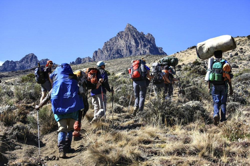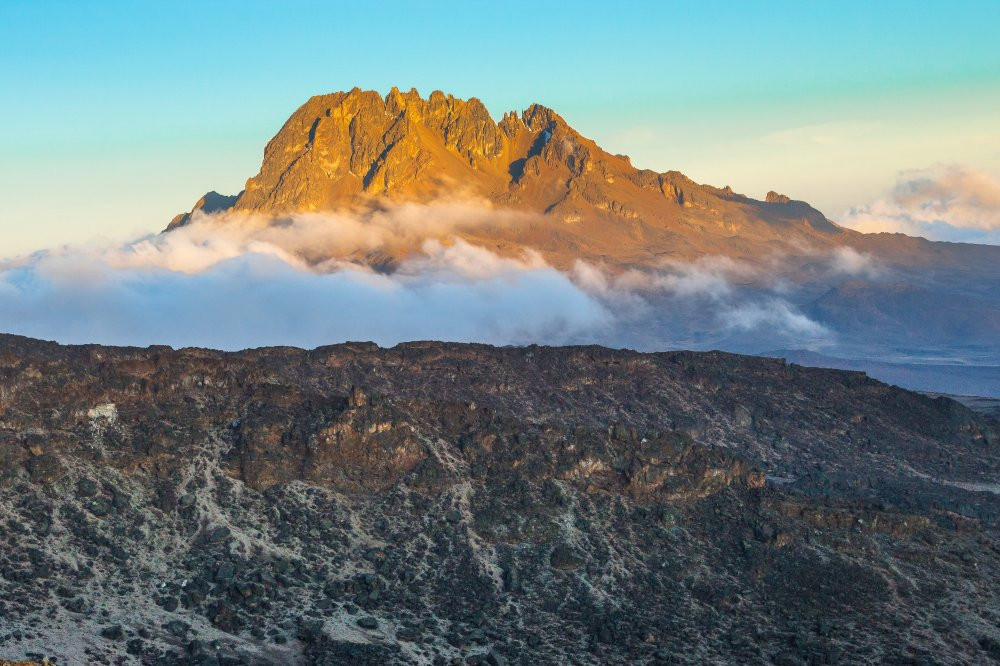 Beim Aufstieg die mächtigen Gipfel des Mawenzi und Kilimanjaro vor Augen haben