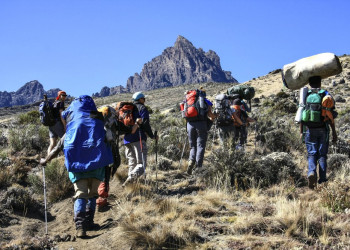 Tag 2 Nalemoru - Simba CampNach dem Frühstück fahren wir auf guter Straße um den Berg herum nach Nalemoru nahe der kenianischen Grenze, dem Ausgangspunkt der Bergbesteigung. Hier erwartet uns bereits unsere Begleitmannschaft, die aus mehreren Trägern, einem Koch, einem Assistant Guide und einem Guide besteht. Die Größe der Mannschaft ist abhängig von der Gruppengröße. Wir registrieren uns im Bergbuch und dann wandern wir los. Der erste Teil der Strecke führt an Feldern vorbei, an die sich auf dieser Seite des Berges der sehr schmale Regenwaldgürtel anschließt. Wir gehen sanft bergauf. Ohne große Anstrengung erreichen wir die Baumgrenze und das Simba Camp (2.625 m). Meist stehen die Zelte schon und die Mannschaft erwartet uns mit einem heißen Tee. Wer möchte, kann nachmittags noch ein Stückchen weiter bergauf gehen - bitte mit dem Guide absprechen.