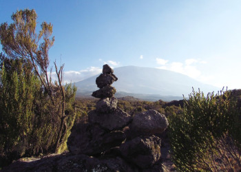 Majestätisch türmt sich das Bergmassiv des Kilimanjaro vor uns auf. Auf keiner anderen Route ist die Aussicht auf das Dach Afrikas so fortwährend unser stetiger Begleiter wie auf der wenig frequentierten und wettersicheren Kikeleva-Route. Von der trockenen Nordseite startend, wenige Kilometer von der kenianischen Grenze entfernt, haben wir die Sonne im Rücken und ideale Bedingungen für die schönsten Panoramablicke auf die Gipfel des Kilimanjaro und Mawenzi. Mantelaffen springen über uns in den Ästen herum und vielleicht sehen wir sogar Elefanten und Büffel zu Beginn unseres Trekkings - auf jeden Fall aber die mächtigen Gipfel sowie in nördlicher Richtung das kenianische Hochland. Wir queren das Hochmoor bis zur zweiten Kikeleva-Höhle, steigen in die karge Wüstenzone am Fuße des Mawenzi auf und campen in einmaliger Kulisse am einzigen See am Kilimanjaro. Auf unserer vergleichsweise einfachen Route passieren wir den Kibo-Sattel und kommen dem Gipfelglück näher – und spätestens wenn wir am Gilman’s Point vor dem berühmten Holzschild stehen, wissen wir dass sich der anstrengende Gipfeltag gelohnt hat. Sicher das Highlight, doch mit der Überschreitung wechseln wir auch die Szenerie: Lavasand und Geröll weichen dem immergrünen Regenwald und der niederschlagsreichere Süden erwartet uns! Wir können uns kaum satt sehen an den Flechten, die von den Bäumen hängen und den bunten Blüten der vielen Pflanzen. So einsam der Norden, so kontrastreich der Süden!