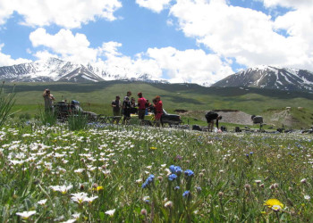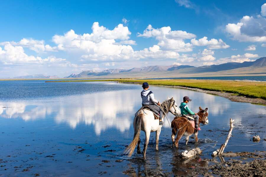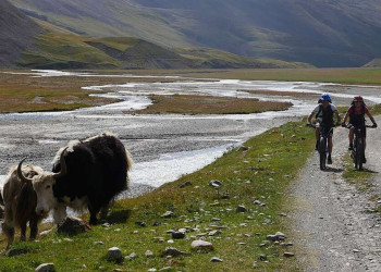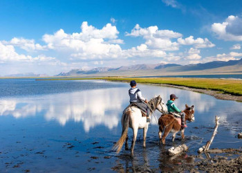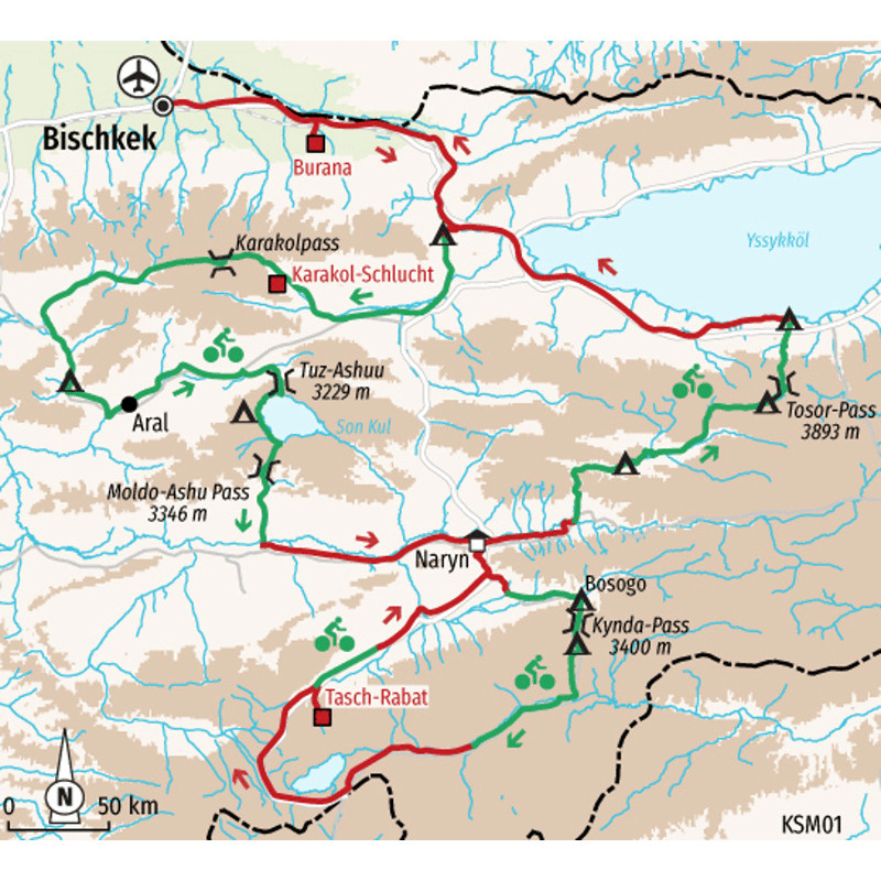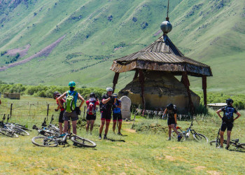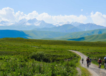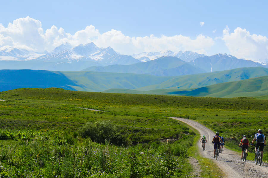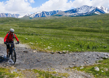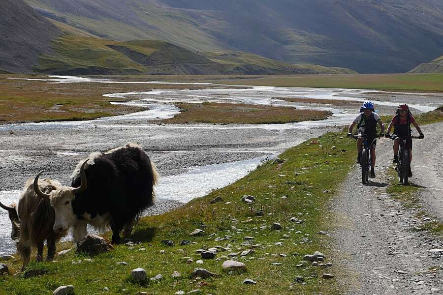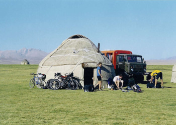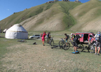MTB Reise zu Füßen der 7000er über Hochland zum Issyk Kul See Himmelsgebirge - scheinbar bis zum Firmament reichen die Gipfel der nördlichsten 7.000er der Welt. Auf einsamen Pisten und Nomadentrails in dieser gewaltigen Hochgebirgswelt stellt sich ein Gefühl der Freiheit ein. Unendlich weite, saftig grüne Hochtäler bieten wild umherstreifenden Pferdeherden und den Yaks und Schafherden der Bergnomaden einen Garten Eden. Die Ferne dominieren majestätisch aufragende, schneebedeckte Gipfel und bilden die herrliche Kulisse für unsere idyllisch gelegenen Lagerplätze. Eingestreut in diese wilde und ungezähmte Landschaft liegen traditionelle Jurtensiedlungen, in denen wir gastfreundlichen kirgisischen Nomaden begegnen. Ein Höhepunkt der Tour ist der Son Kul, ein Gebirgssee auf 3.040 m Seehöhe im inneren Tien Shan, umgeben von Almen und duftenden Kräuterwiesen. Auf unserem Bikesattel überwinden wir mehrere alpine 3.000er-Pässe und fahren entlang kristallklarer Bäche und Flüsse und durch tief eingeschnittene Canyons zum Issyk Kul, dem zweitgrößten Gebirgssee der Welt. Sein glasklares, warmes Wasser lädt uns zum Baden ein. Entdecken Sie mit uns auf dieser abenteuerlichen Tour eine archaische Landschaft. Balsam für die Seele und Entschleunigung pur!