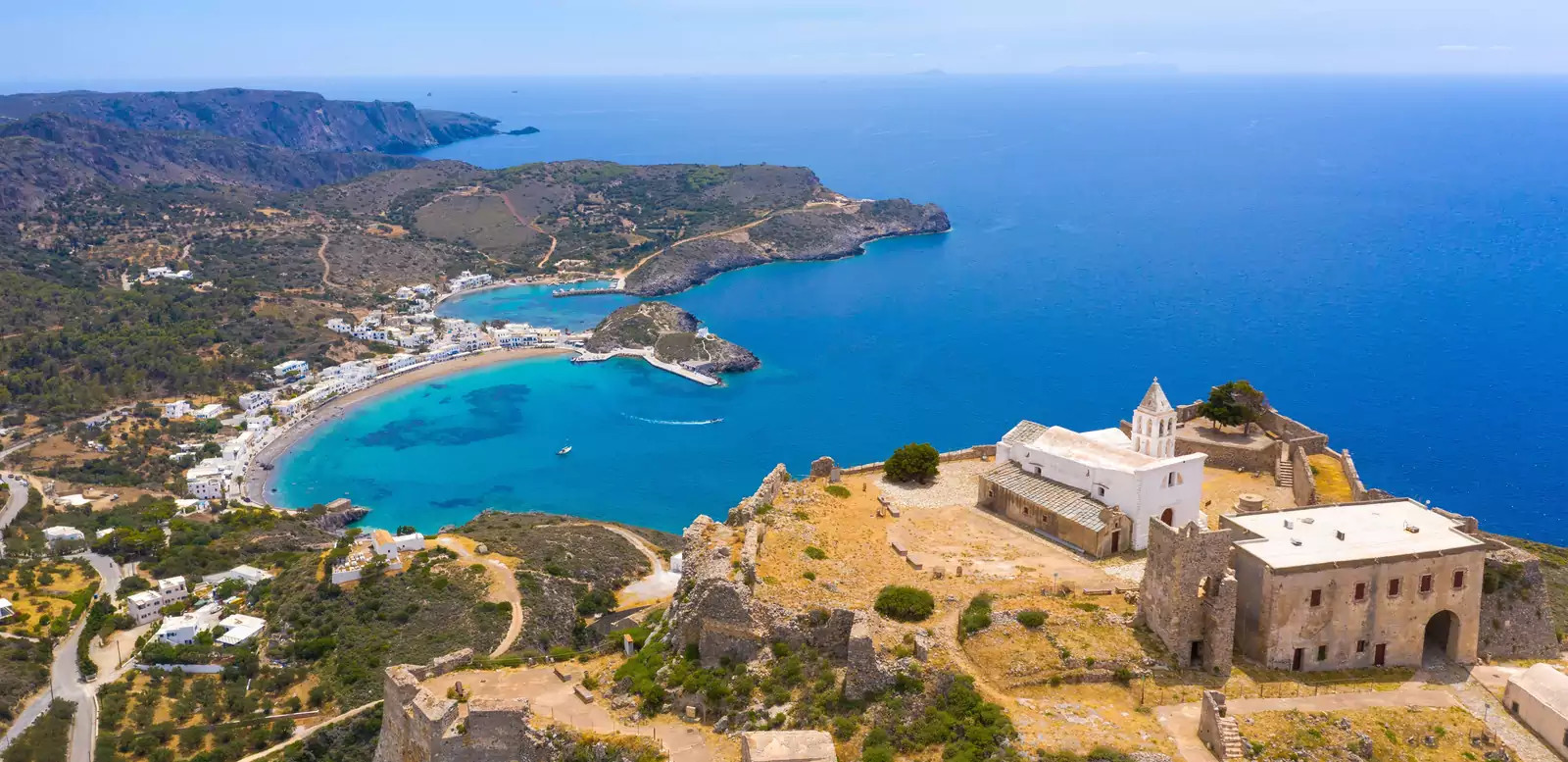 4. Tag: Auf nach Kythira!Wir nehmen die Fähre nach Kythira und chillen mit Blick auf die Festung von Chora, die über dem Hafen der Bucht von Kapsali thront. Auf einem kleinen Spaziergang erkunden wir den verträumten Ort.
