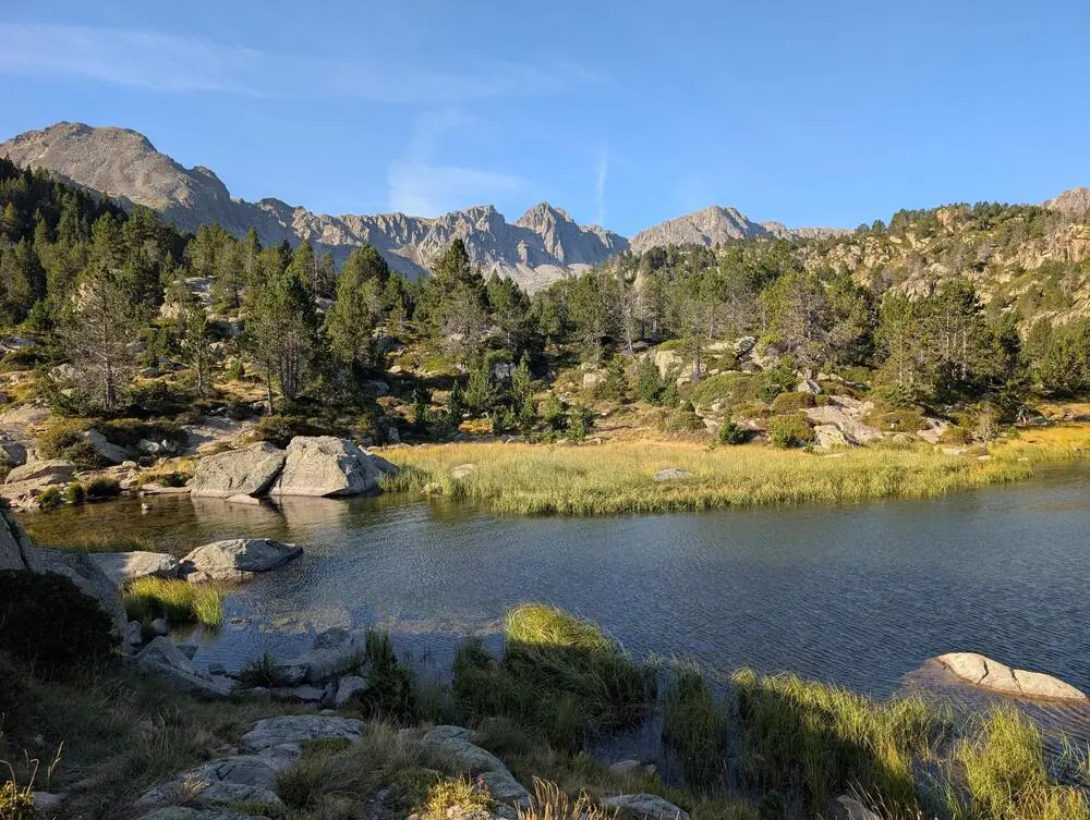 2. Tag: Zum Pas de les VaquesDirekt in Soldeu beginnt ein kleiner, von Rhododendren umsäumter Bergpfad. Wir wandern durch einen schattigen Kiefernwald und über alpine Wiesen bis zum kristallklaren Bergsee von Siscaró. Nach einer Rast steigen wir hinauf zum Pas de les Vaques (Pass der Kühe), der uns herrliche Blicke auf den See und die Bergkulisse Andorras bietet. Mit etwas Glück sehen wir auch Gämsen und Murmeltiere (GZ: 6 Std., +/- 750 m).