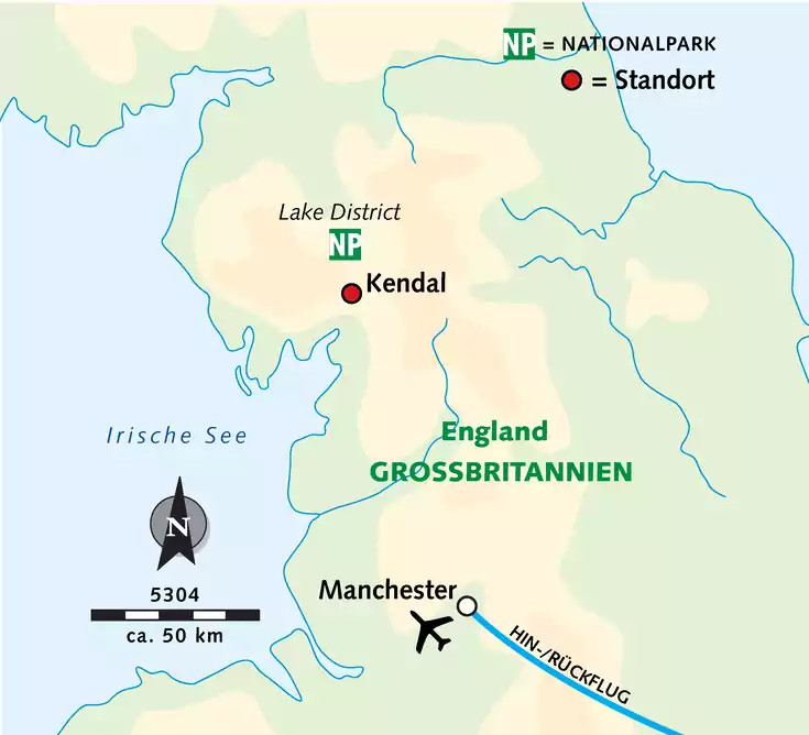 1. Tag: Welcome to EnglandFlug nach Manchester und Transfer nach Kendal (1 1/2 Std.)