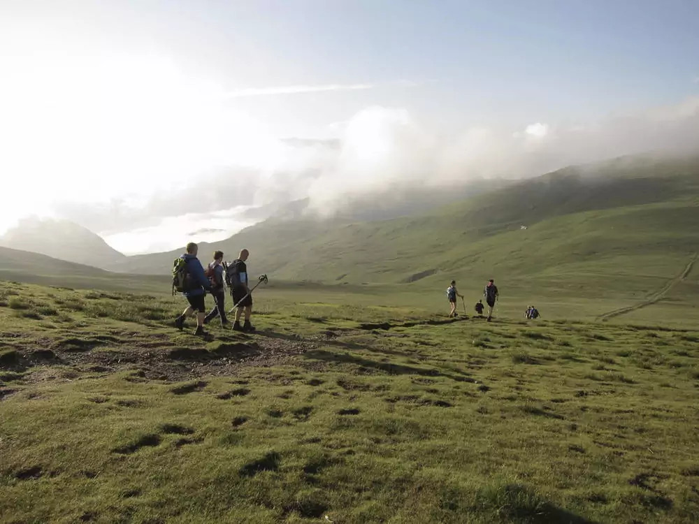 7. Tag: Rund um AmblesideDie letzte Wanderung ist wegen eines recht steilen Aufstiegs etwas anspruchsvoller (2-Stiefel), aber traumhaft schön. Wir starten in Ambleside, einem der meistbesuchten Orte des Nationalparks. Nach Durchquerung eines Parks mit Kaskaden und Wasserfällen geht es steil hinauf zum Wansfell (470 m). Den Windermere Lake, größter See Englands, vor Augen, wandern wir zum kleinen Ort Troutbeck und hinab zum Nordufer des Sees mit vielen Einkehrmöglichkeiten (GZ: 4 Std., +/- 400 m).