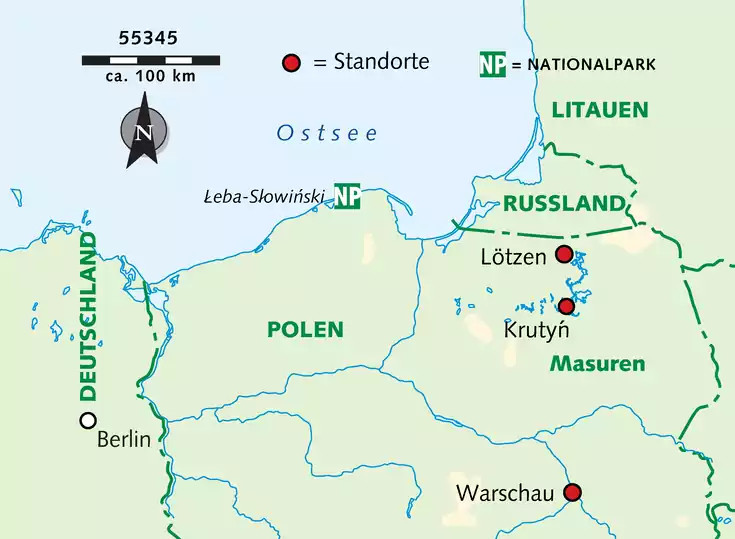 So wohnen wirWarschau/Warszawa: In der ersten und letzten Nacht wohnen wir im zentral gelegenen Drei-Sterne-Hotel Holiday Inn Warsaw Express - The HUB by IHG. Das moderne Hotel verfügt über Zimmer mit TV, Föhn, Wasserkocher und kostenlosem WLAN. Lötzen/Giżycko: Für drei Übernachtungen erwartet uns das familiengeführte, ruhig gelegene Drei-Sterne-Hotel Mazury. Es liegt nur 200 m vom Kisajno-See entfernt. Alle Zimmer bieten uns Flachbild-TV, Föhn, Wasserkocher und teilweise Balkon. Krutyn/Kruttinnen: Weitere drei Nächte verbringen wir im familiengeführten Drei-Sterne-Hotel Mazur Syrenka, direkt am Ufer des Krutinnen-Flusses. Die 159 Zimmer verfügen über TV, Telefon, teilweise Balkon/Terrasse und WLAN in den öfentlichen Bereichen (Ü = Übernachtung).