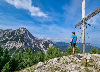 9. Tag: Durch die "Öfen" zum Stoderzinken (2.048 m)Noch einmal geht es hoch hinauf. Durch eine Schlucht und über Wald- und Bergpfade wandern wir auf den Gipfel des Stoderzinken, mit toller Aussicht auf Gröbming und das Ennstal. Das Friedenskircherl, eine kleine Kapelle am Fels und besonderer Ort am Berg ist ein lohnenswerter Abstecher auf dem Rückweg (GZ: 4 1/2 Std., + 1.100 m, - 220 m).