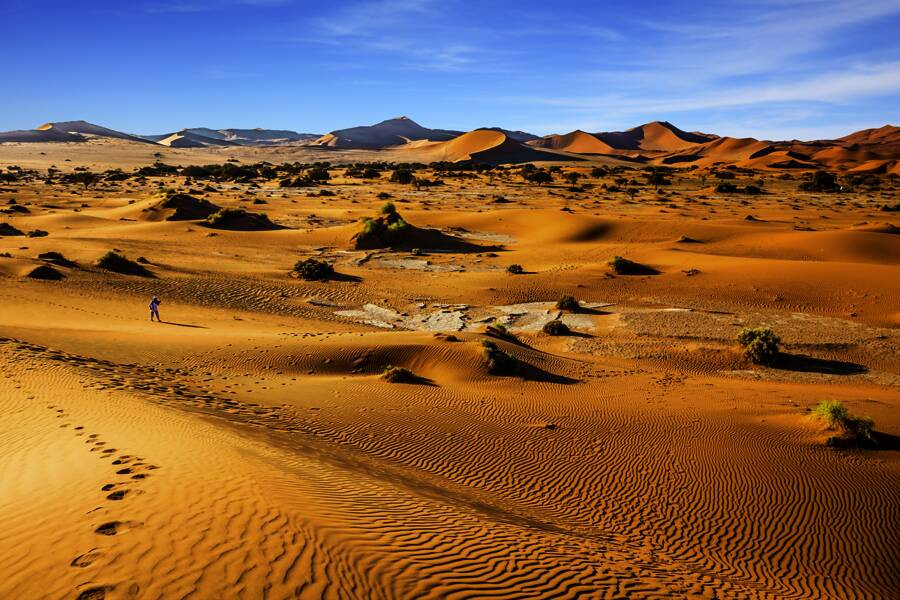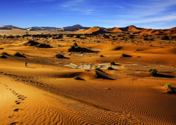 Afrika wie aus dem Bilderbuch, das ist Namibia: Rostrot flimmern die Sandberge in der Namibwüste, die faszinierenden Werke afrikanischer Steinzeitkünstler in Twyfelfontein geben Rätsel auf, an den Wasserstellen im Etoschapark, wo Antilopen und Zebras ihren Durst löschen, spüren Sie den Atem der Wildnis. Erfrischend anders: Swakopmund, ein Seebad zwischen Wüstensand und Strand, wo der Wind frisch wie an der Nordsee bläst. Damit Ihr Bild komplett wird, sehen Sie neben den Klassikern auf dieser ausführlichen Rundreise durch Namibia aber auch den tiefen Süden des Landes - mit einer der größten Schluchten der Erde und der Geisterstadt Kolmanskuppe, die vom Diamantenrausch in der Wüste erzählt.
