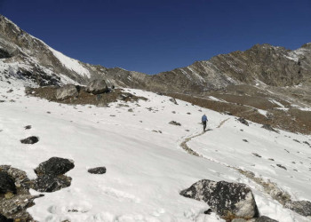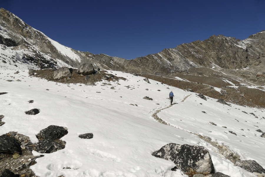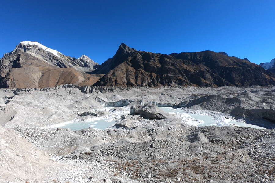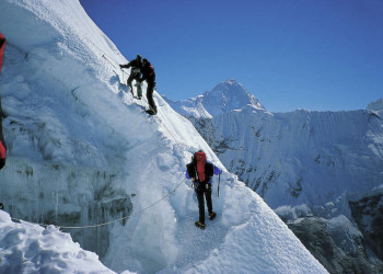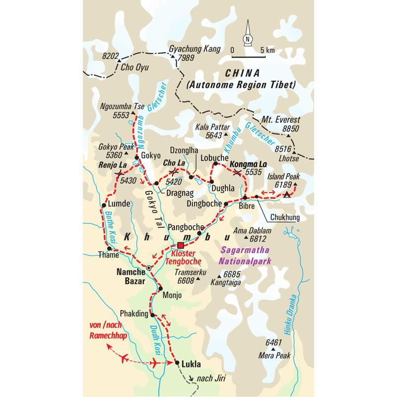 Der Königsweg im Himalaya – Trekkingreise auf einer abwechslungsreichen Hochroute zum beliebtesten 6000er Nepals, dem Island PeakAuf den letzten Höhenmetern kommen wir nur langsam voran, der Weg ist geröllig und steil, ab und zu liegt noch etwas Altschnee. Die Luft ist dünn, wir befinden uns auf über 5000 Meter Höhe. Um uns herum herrscht Stille. Und dann, ganz plötzlich, wird der Vorhang im Theater der Natur geöffnet: Wir stehen auf dem Renjo La (5.350 m) und blicken auf ein atemberaubendes Panorama. Unter uns schlummert der türkisfarbene Gokyo-See, die kleine Siedlung am Seeufer ist aus der Höhe kaum zu erkennen. Dahinter schiebt sich der mächtige Gletscherstrom des Ngozumpa-Gletschers zwischen den Bergriesen hindurch, die weißen Gipfel der Sechstausender umgeben uns fast vollständig. Wir trekken durch die eindrucksvolle Bergwelt und besteigen den Gokyo Ri (5.357 m), von dessen Gipfel die Achttausender Cho Oyu, Mount Everest, Lhotse und Makalu zu bestaunen sind. Hier ist unser Weg aber noch lange nicht zu Ende. Wir überwinden mit dem Cho La und dem Kongma La noch zwei weitere Hochgebirgspässe. Unterwegs queren wir sich langsam ins Tal wälzende Gletscher und erwandern uns im Angesicht markanter Gipfel immer wieder neue Blickwinkel. Yak- und Muli-Karawanen kreuzen dabei mehr als nur einmal unseren Weg, bevor dann das absolute Highlight der Tour ansteht: Die Besteigung des Island Peak und die fantastische Rundumsicht aus 6.189 m. Während über 5.000 m gewiss die natürliche Schönheit der Khumbu-Region im Mittelpunkt steht, können wir uns in den etwas weniger luftigen Höhen auch der Kultur des Gebietes widmen. In Thame und Tengpoche locken eindrucksvolle tibetisch-buddhistische Klöster, in Namche Bazar und Khumjung Museen, die sich der Historie der Region und des Alpinismus widmen. Diese Reise ist das Trekking-Komplettprogramm in der Everest-Region.