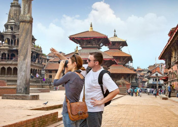 Reges Treiben herrscht in den Straßen von Kathmandu, wo Straßenverkäufer unermüdlich ihre Waren anpreisen. Pilger drehen murmelnd ihre Gebetsmühlen, während aus den Lautsprechern der Tempel Mantras in Dauerschleife erklingen. Dazu flattern bunte Gebetsfahnen im Wind. Im Geländewagen erkunden wir den Chitwan-Nationalpark, und in Pokhara am Phewasee grüßen am Horizont glitzernd die Eisriesen des Himalayas in der Sonne. Ein Besuch Bhaktapurs rundet die Reise königlich ab.