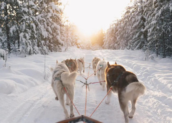 3. Tag: Heiße Kufen & schmale BretterDer heutige Vormittag steht ganz im Zeichen der Huskys. Wir unternehmen eine ca. 3-stündige Hundeschlitten-Tour durch die einzigartige Winterlandschaft (2 Personen/Schlitten). Nach dem Lunch lernen wir alles rund um ein traditionsreiches samisches Fortbewegungsmittel: Skier aus Holz. Auf einer gemeinsamen Skitour über den Fluss probieren wir es selbst aus!
