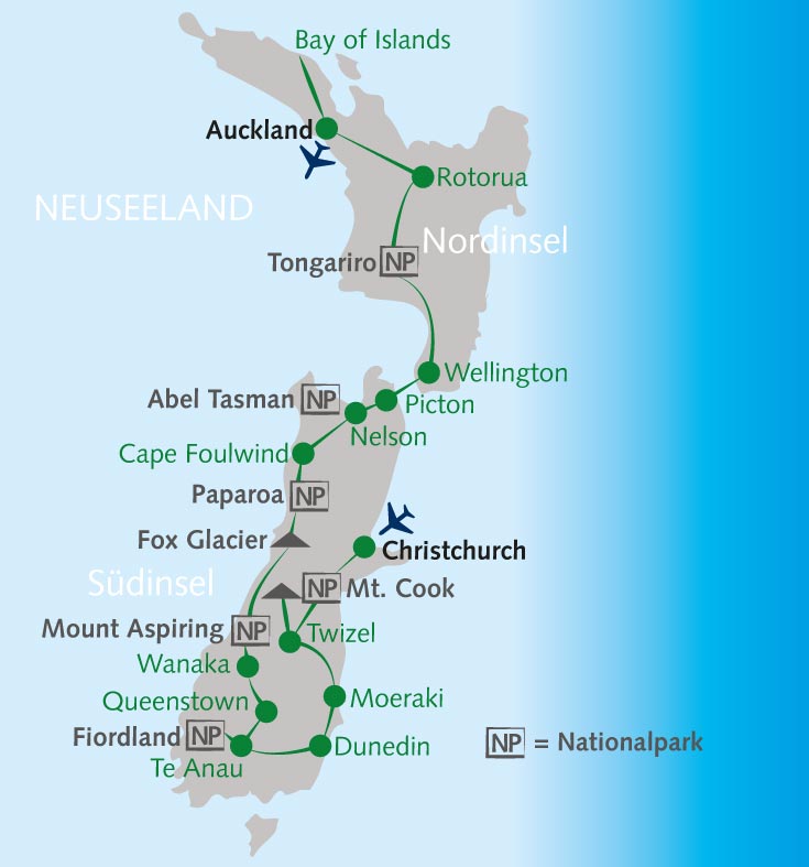 Während bei uns der Sommer auf seinem Höhepunkt ist, beginnt für viele Kiwis die schönste Zeit des Jahres: der Winter. Insbesondere die Südinsel hält bei guten Wetterbedingungen einige Überraschungen für uns bereit. Ob schneebedeckte Berge im Mount Cook National-Park, Winterzauber im Fjordland oder reges Treiben im Skigebiet bei Wanaka - Neuseeland zeigt sich im Winter von einer ganz besonderen Seite. Die für mildere Klima bekannte Nordinsel ist ebenso beeindruckend. Heiße Quellen, Geysire und Vulkanlandschaften warten nur darauf erkundet zu werden. Ein Besuch bei den Maori bringt uns die Kultur der Ureinwohner ganz nah. Und da Neuseeland im Winter vergleichsweise wenig bereist wird, können wir all dies ungestört erleben. Also, sei dabei und erlebe das Ende der Welt auf eine einzigartige Art und Weise!