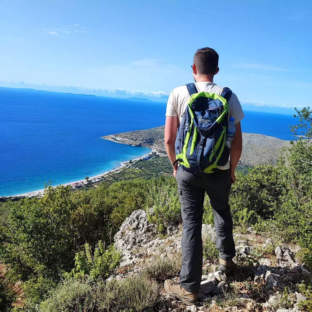 2. Tag: Schätze der KüsteGleich ein Paukenschlag: Wir wandern am Kap Rodon – eine grüne Landzunge, die sich wie ein Finger zehn Kilometer weit ins Mittelmeer streckt. Unsere Wanderung führt durch eine Szenerie wie aus einem Abenteuerfilm: wilde Klippen, einsame Strände, verlassene Bunker und die ehrwürdigen Mauern einer alten Burg – all das vereint in einem Ort, der Albaniens raue Schönheit perfekt verkörpert (GZ: 4 Std., + 240 m, - 320 m, 2 Ü in Shengjin/Kune an der Lagune Vain).